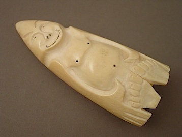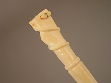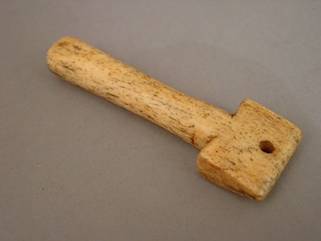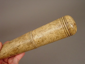 This original scrimshaw sail seam rubber was hand crafted of whale bone, likely around the mid-19th century. It measures 4-1/4 inches in length, shows significant wear, and has great patina.